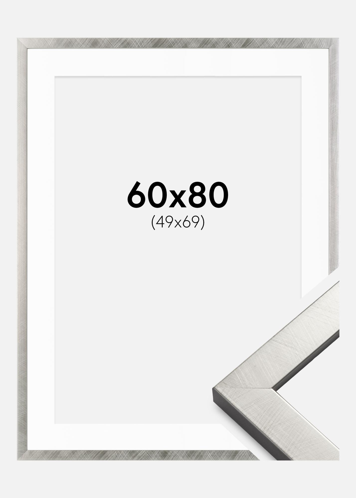 Ramme Uppsala Sølv 60x80 cm - Passepartout Hvit 50x70 cm