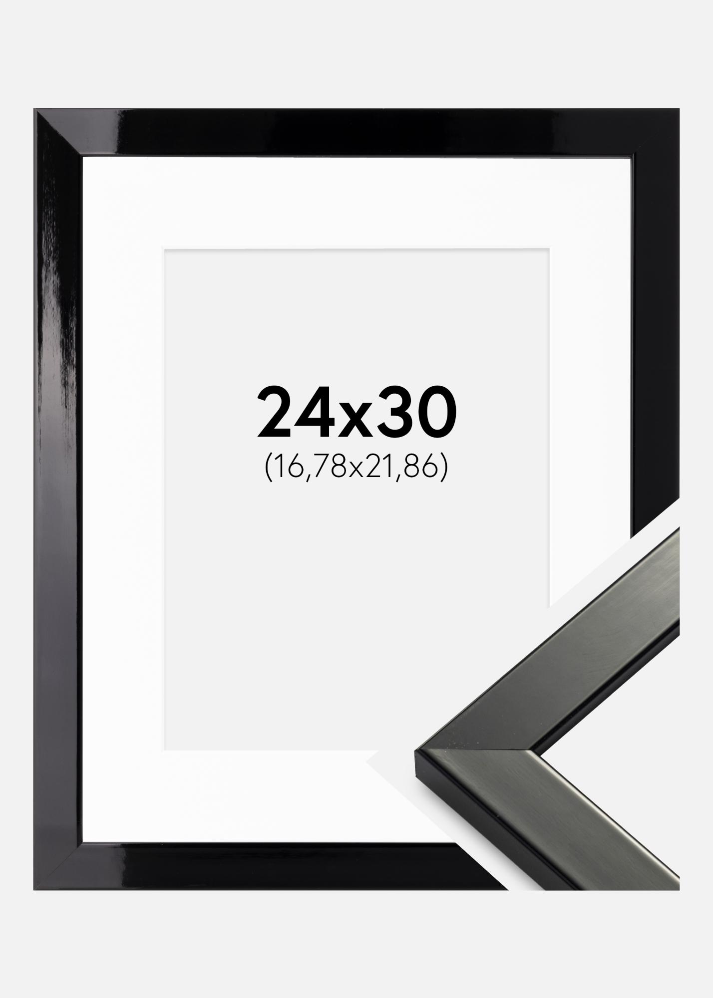Ramme Uppsala Svart Høyglans 24x30 cm - Passepartout Hvit 7x9 inches
