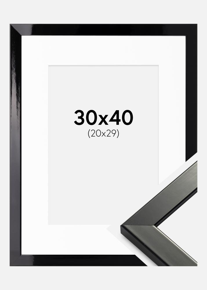 Ramme Uppsala Svart Høyglans 30x40 cm - Passepartout Hvit 21x30 cm