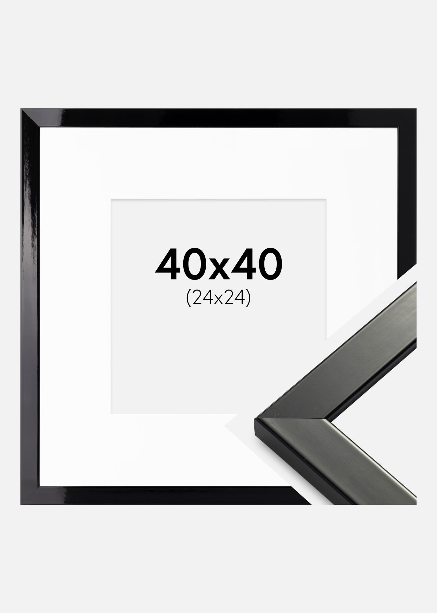 Ramme Uppsala Svart Høyglans 40x40 cm - Passepartout Hvit 25x25 cm