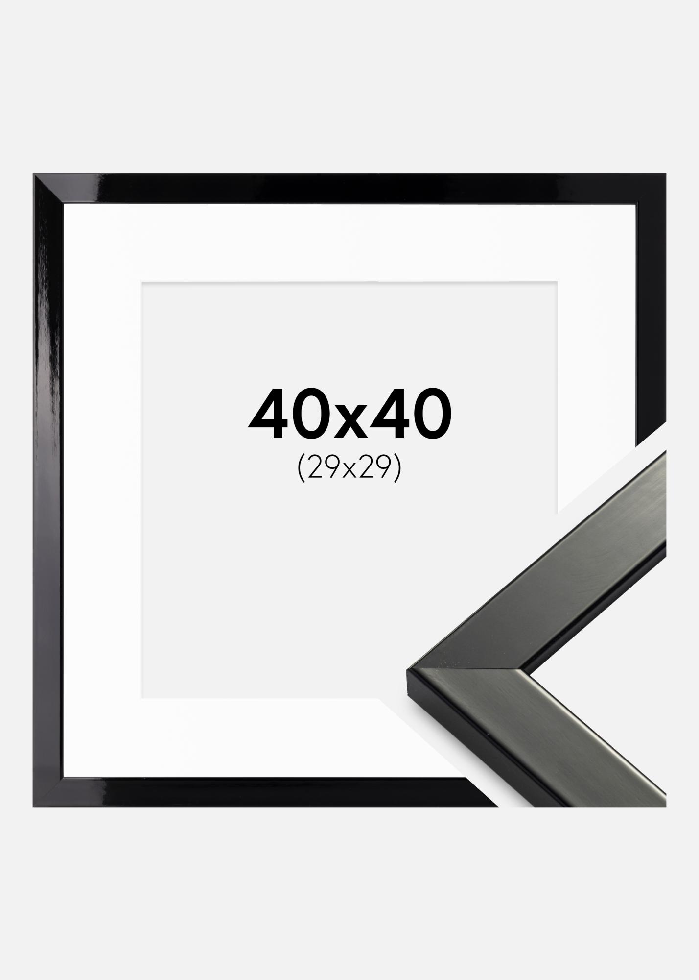 Ramme Uppsala Svart Høyglans 40x40 cm - Passepartout Hvit 30x30 cm