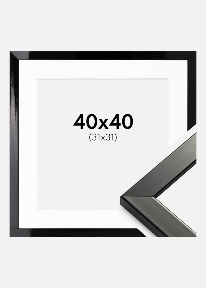 Ramme Uppsala Svart Høyglans 40x40 cm - Passepartout Hvit 32x32 cm