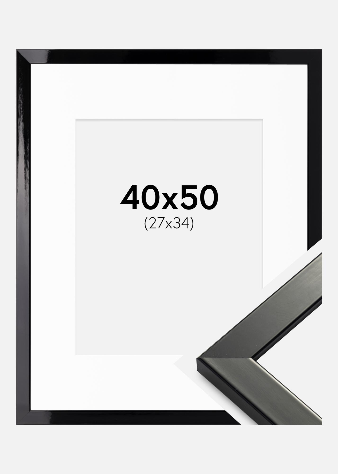Ramme Uppsala Svart Høyglans 40x50 cm - Passepartout Hvit 28x35 cm