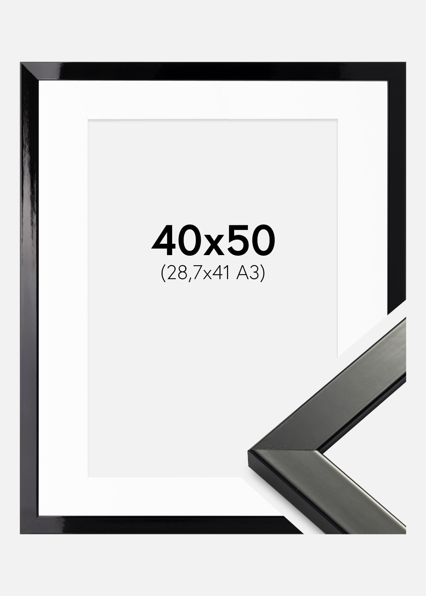 Ramme Uppsala Svart Høyglans 40x50 cm - Passepartout Hvit 29,7x42 cm (A3)