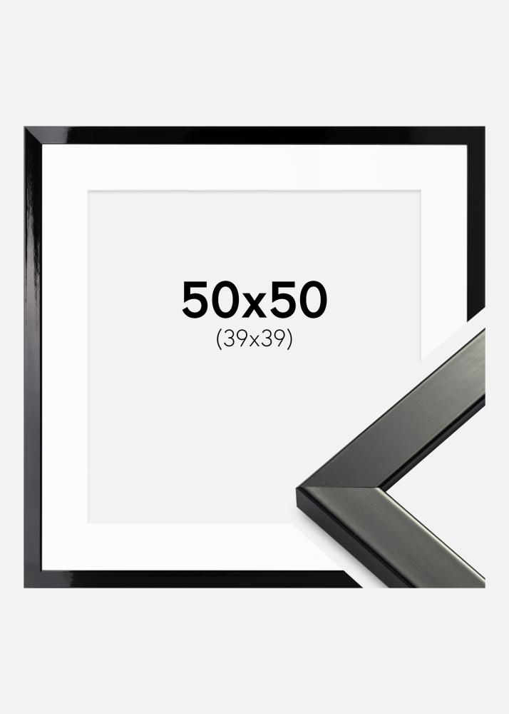 Ramme Uppsala Svart Høyglans 50x50 cm - Passepartout Hvit 40x40 cm