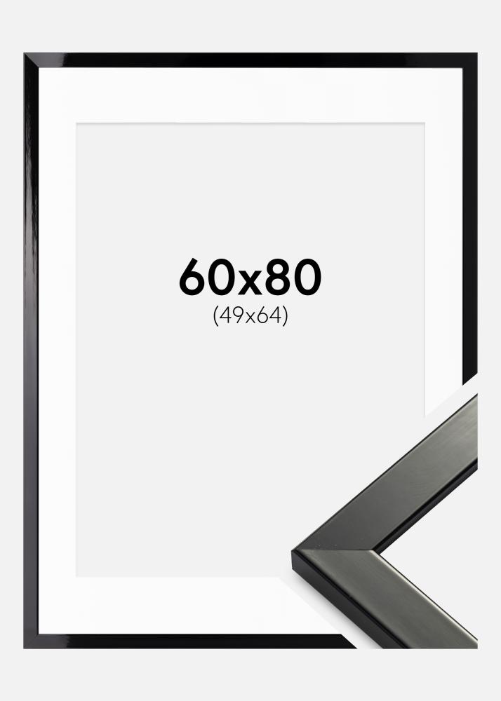 Ramme Uppsala Svart Høyglans 60x80 cm - Passepartout Hvit 50x65 cm