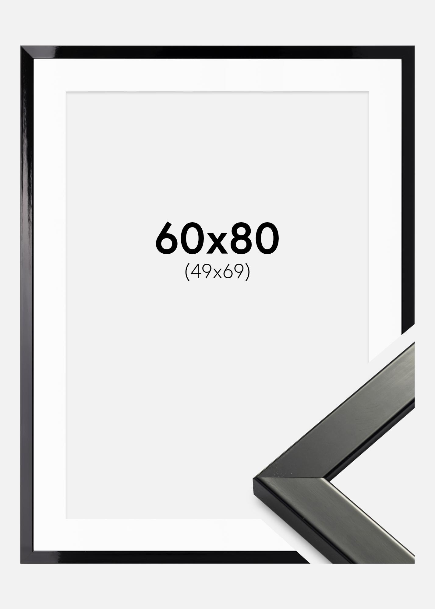 Ramme Uppsala Svart Høyglans 60x80 cm - Passepartout Hvit 50x70 cm