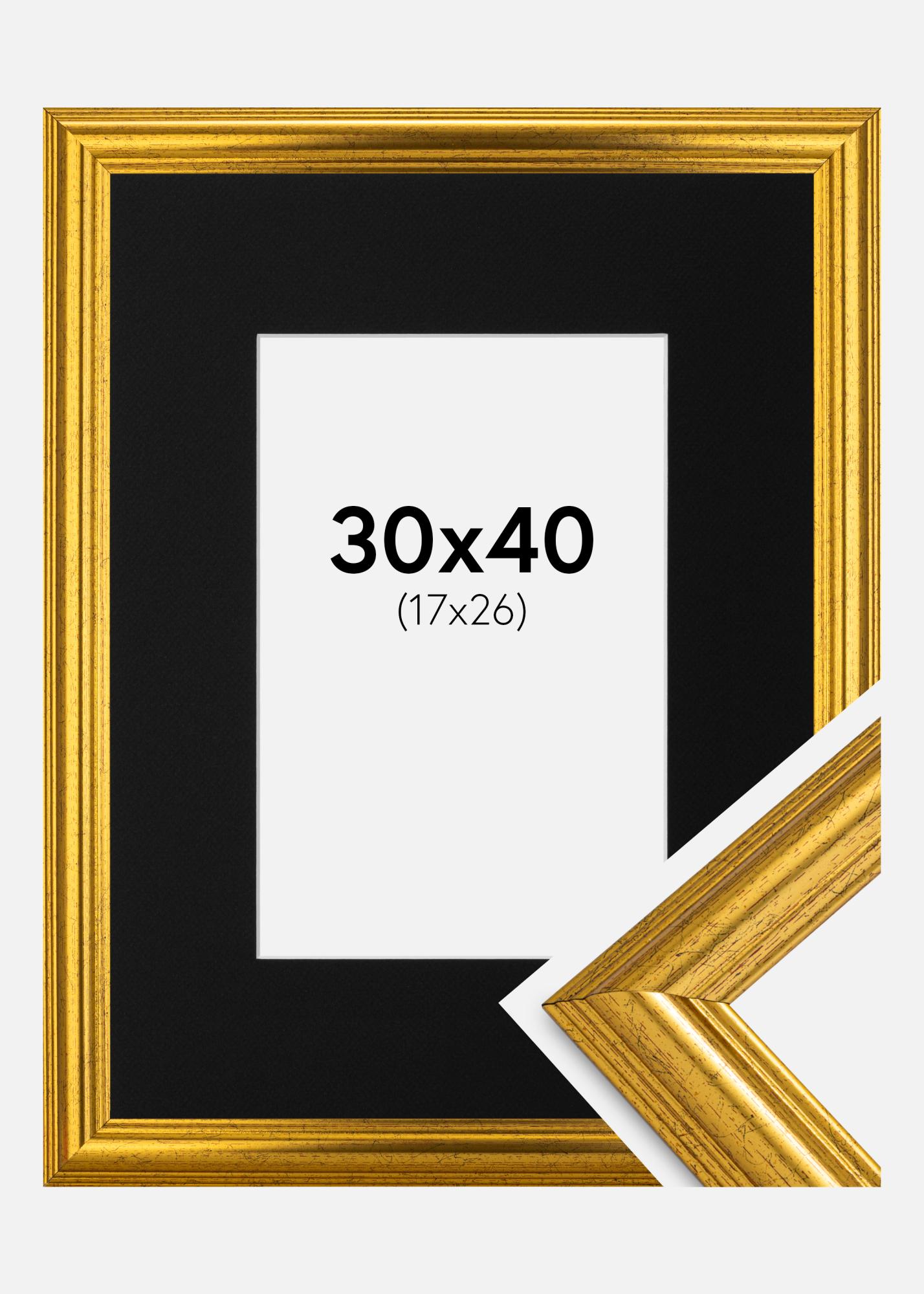 Ramme Västkusten Gull 30x40 cm - Passepartout Svart 18x27 cm