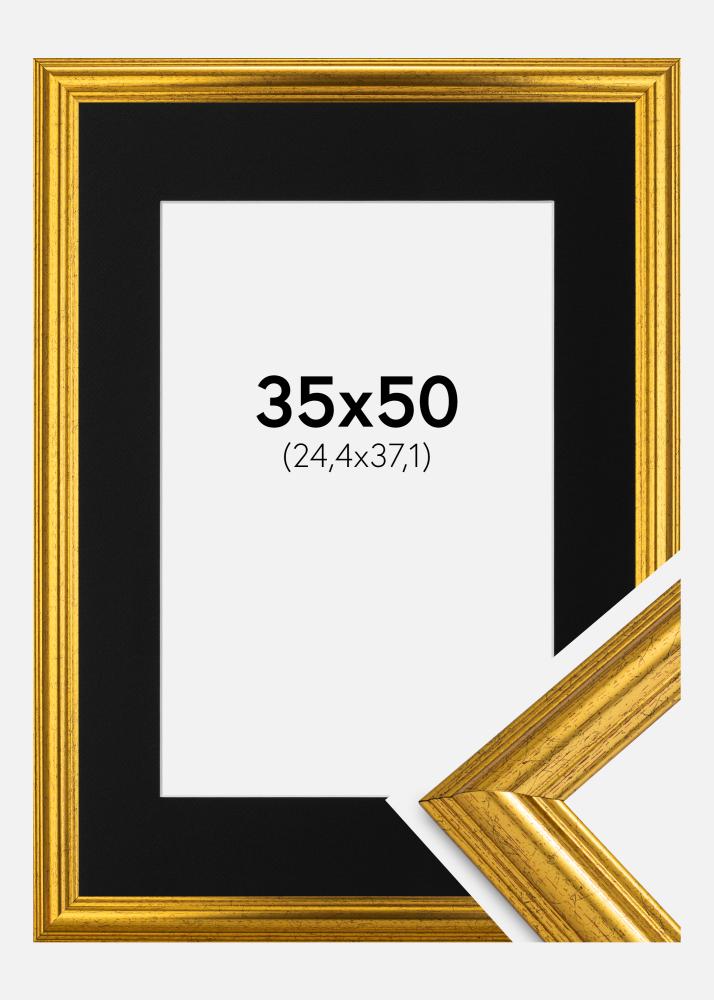 Ramme Västkusten Gull 35x50 cm - Passepartout Svart 10x15 inches