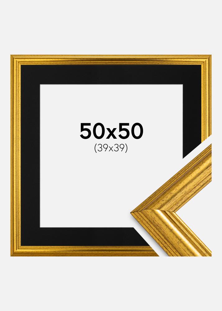 Ramme Västkusten Gull 50x50 cm - Passepartout Svart 40x40 cm