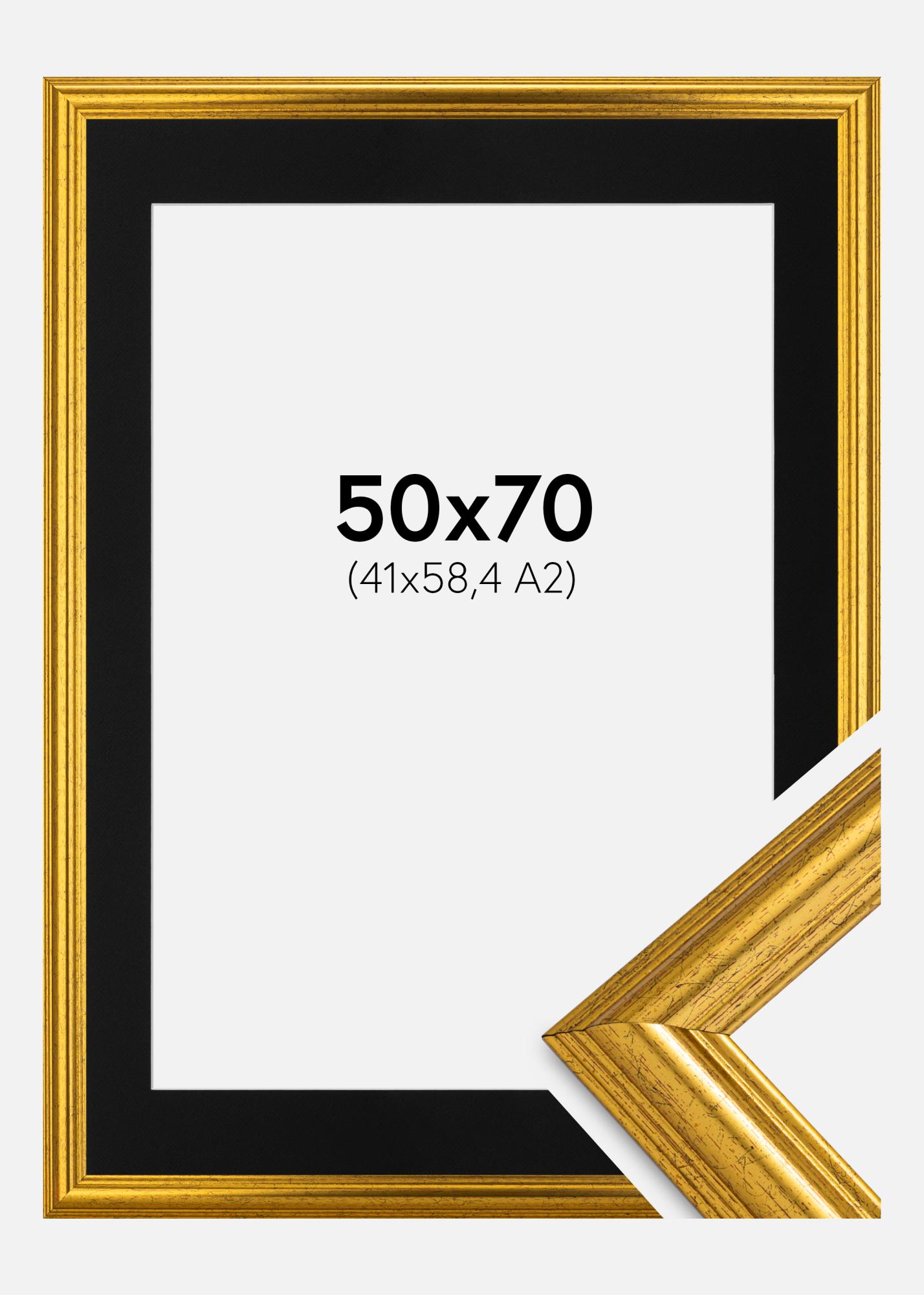 Ramme Västkusten Gull 50x70 cm - Passepartout Svart 42x59,4 cm (A2)