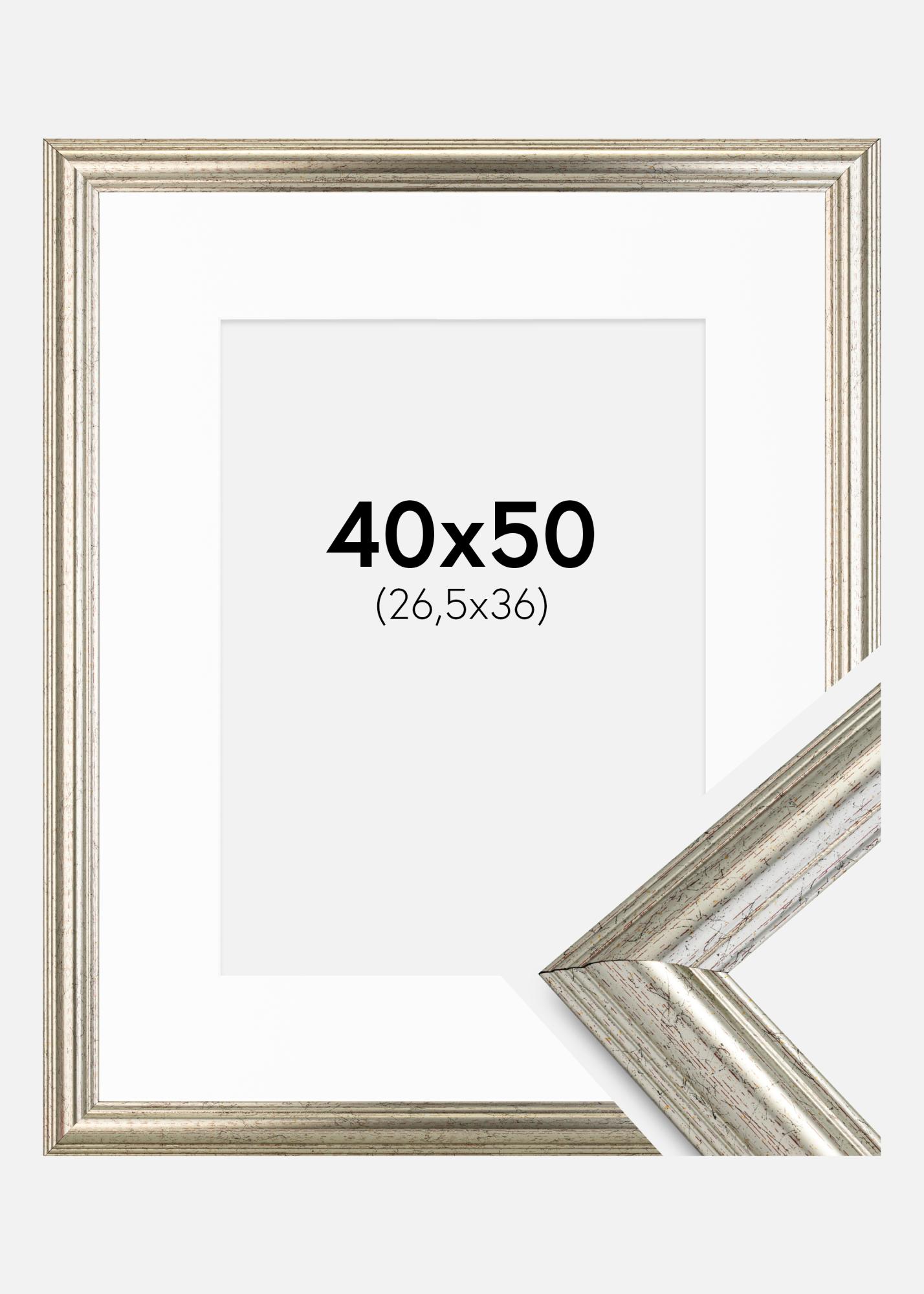 Ramme Västkusten Sølv 40x50 cm - Passepartout Hvit 27,5x37 cm