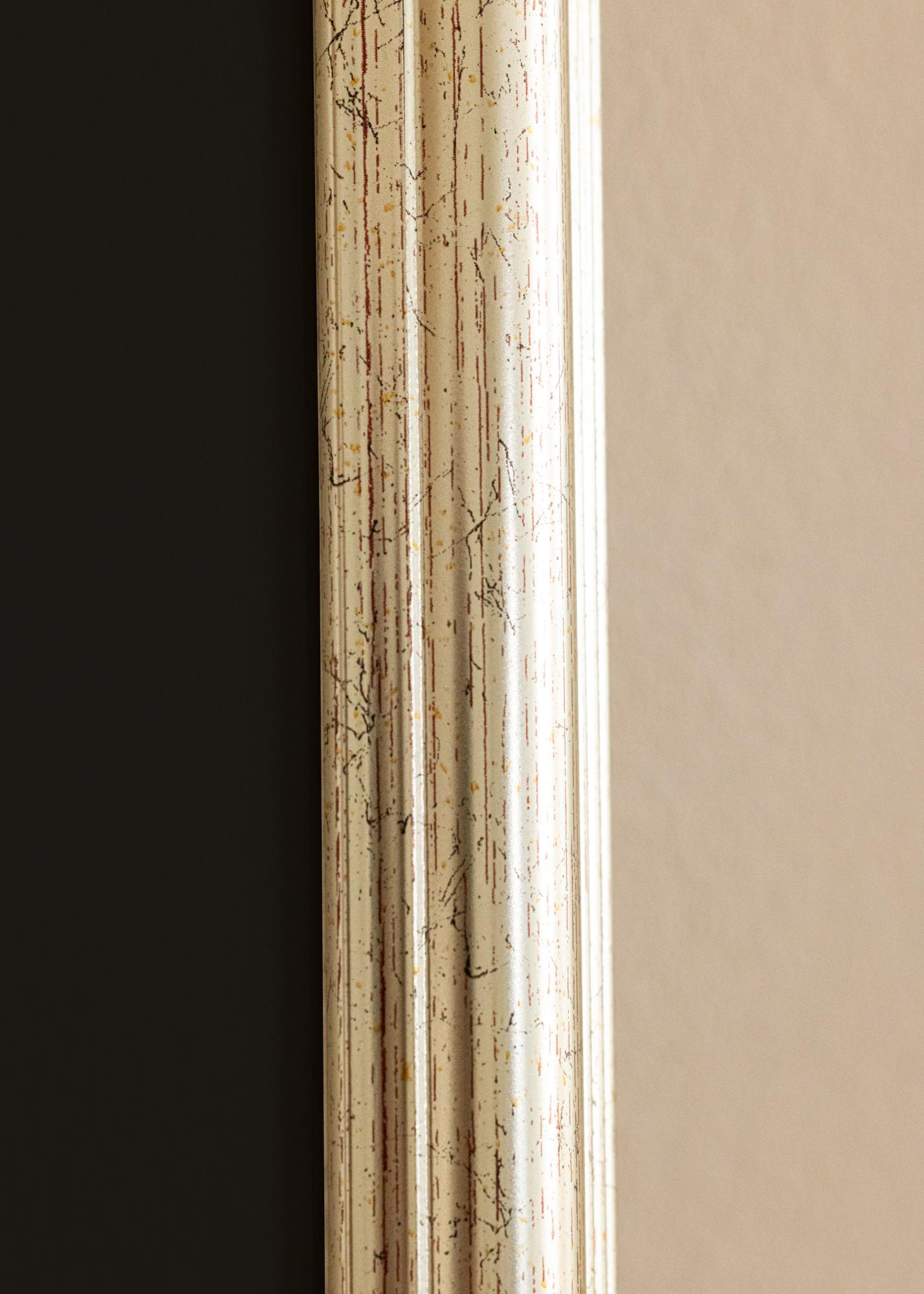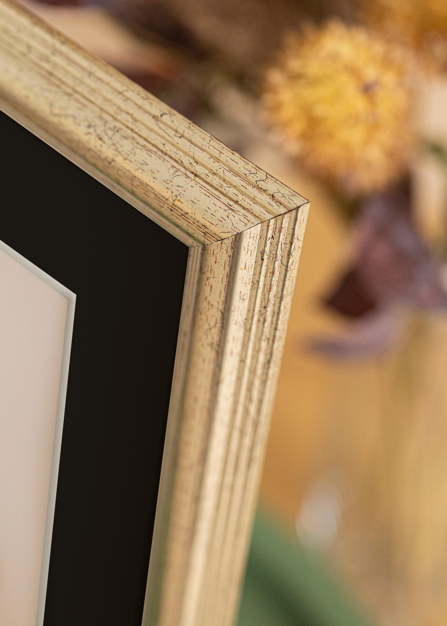 Pakke med bilderamme og passende svart passepartout. På produktbildet ser du rammens mål (skrevet med fet skrift) og passepartoutens innvendige mål (skrevet i parentes). Merk at passepartoutens innvendige mål alltid må være 1 cm mindre enn ønsket bildestørrelse.