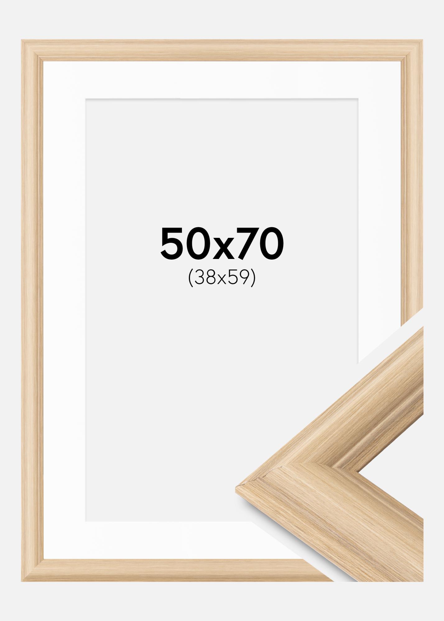 Denne elegante eikemønstrede rammen med passepartout er det perfekte valget for å fremheve dine favorittbilder. Med en rammestørrelse på 39x60 cm og en bredde på 31 mm, tilbyr den en stilren og moderne innramming som passer i de fleste hjem. Den matte overflaten gir en sofistikert følelse, mens den hvite passepartouten skaper en vakker kontrast som løfter frem motivet.