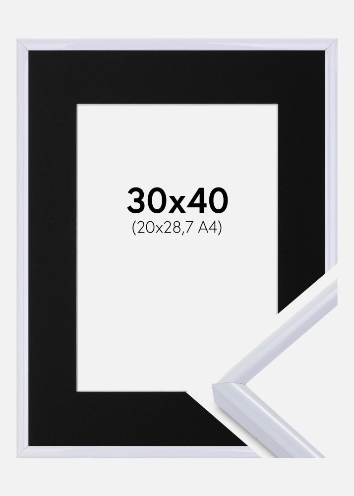 Ramme Victoria Hvit 30x40 cm - Passepartout Svart 21x29,7 cm (A4)