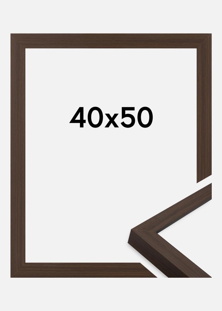 Rammen passer til motiver i størrelsen 40x50 cm og er utstyrt med metallhengere på baksiden, slik at du enkelt kan henge den både horisontalt og vertikalt. Den brune fargen fungerer som et dekorativt innslag som fremhever både fotografier og plakater på en smakfull måte.