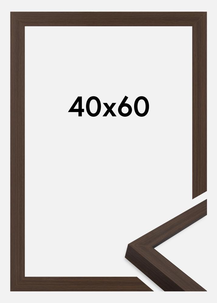 Den brune Ramme har en 40 mm bred rammeprofil og en dybde på 35 mm, noe som gir den en robust følelse samtidig som den beholder sitt elegante preg. De rette linjene og den jevne finishen gjør at den passer like godt i moderne, skandinaviske hjem som i mer tradisjonelle miljøer.