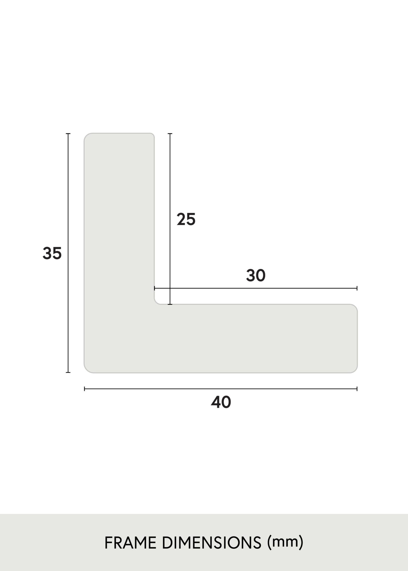 Rammen har en 40 mm bred rammelist og en dybde på 35 mm, noe som gir en stabil og robust følelse. Den er laget av tre og utstyrt med metallhengere på baksiden, slik at du enkelt kan henge den både horisontalt og vertikalt. Dette gir fleksibilitet i hvordan du ønsker å presentere bildene dine.
