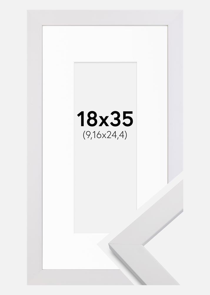 Ramme White Wood 18x35 cm - Passepartout Hvit 4x10 inches