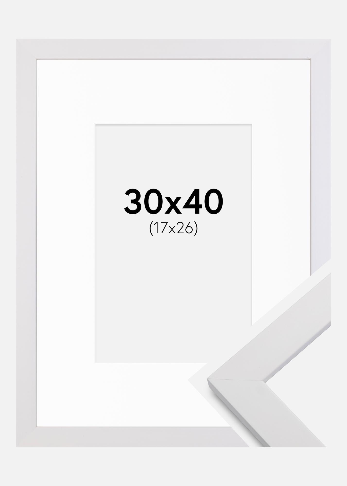 Ramme White Wood 30x40 cm - Passepartout Hvit 18x27 cm