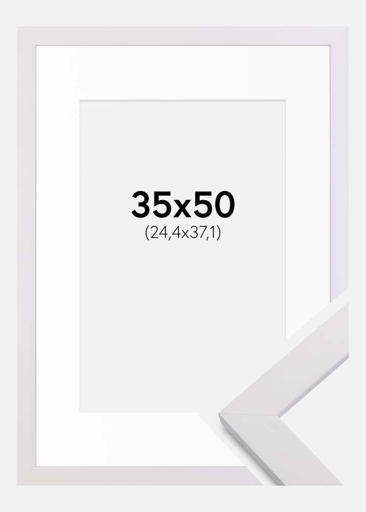 Ramme White Wood 35x50 cm - Passepartout Hvit 10x15 inches