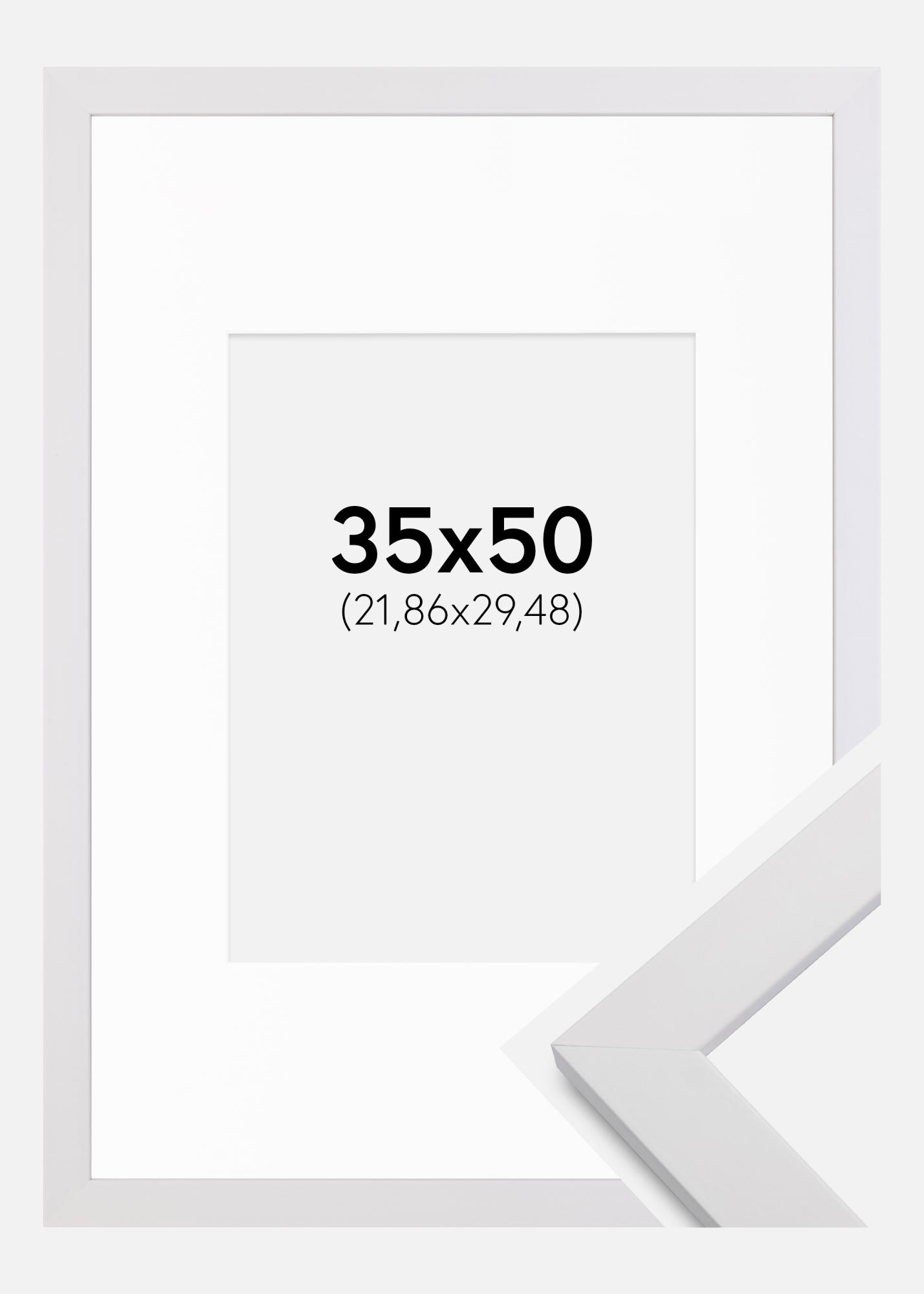 Ramme White Wood 35x50 cm - Passepartout Hvit 9x12 inches