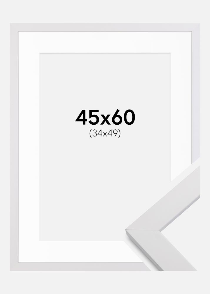 Ramme White Wood 45x60 cm - Passepartout Hvit 35x50 cm