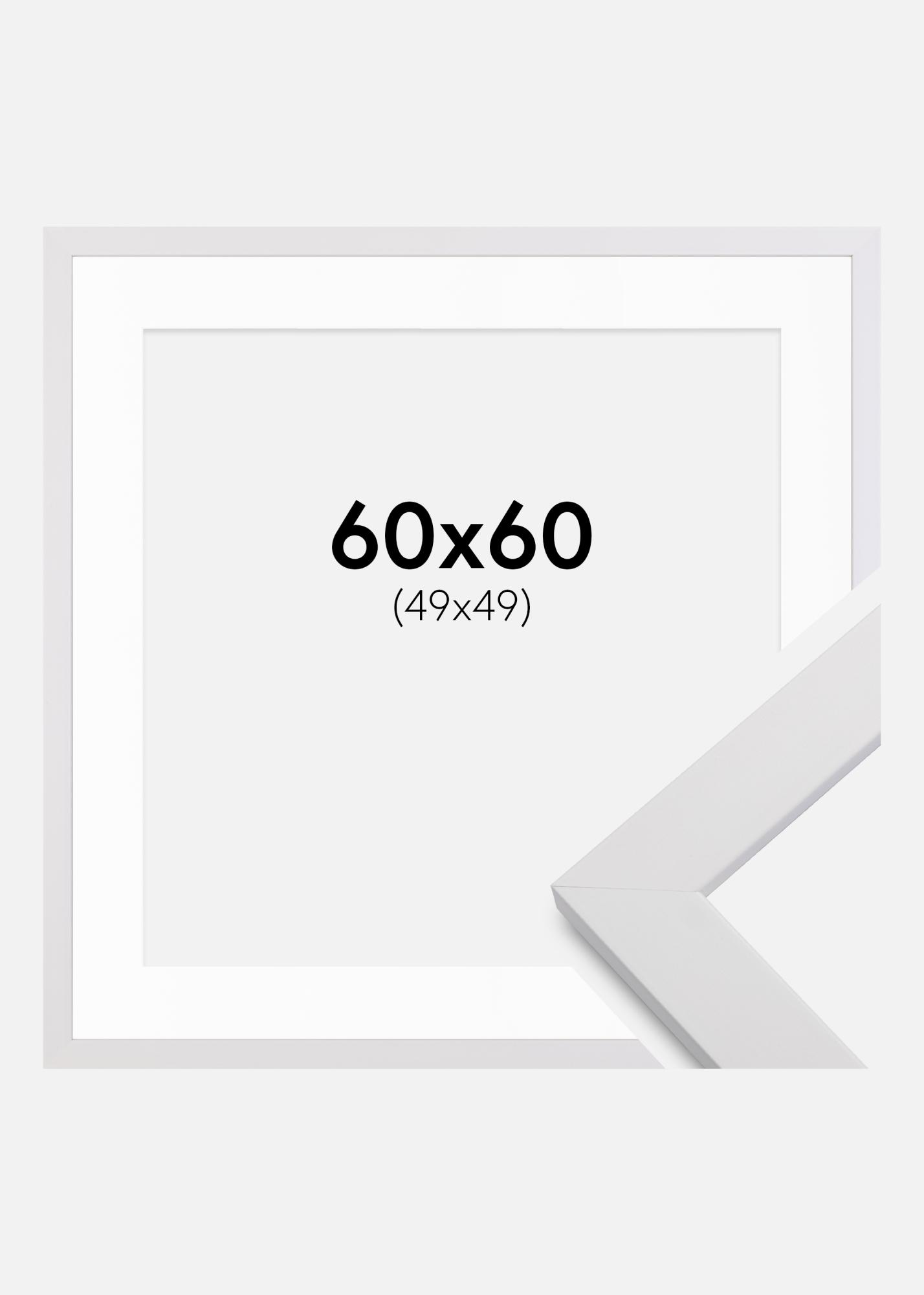 Ramme White Wood 60x60 cm - Passepartout Hvit 50x50 cm
