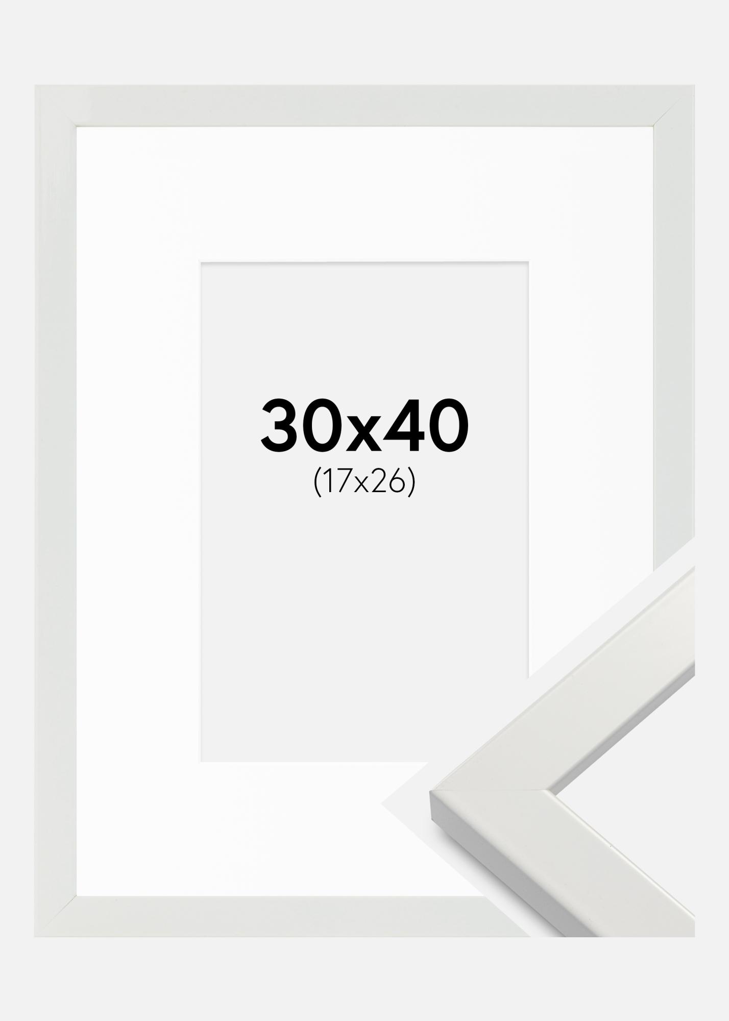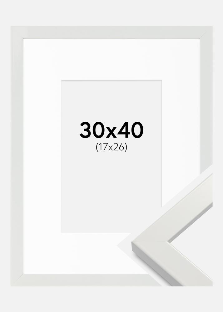 Ramme White Wood Glossy 30x40 cm - Passepartout Hvit 18x27 cm