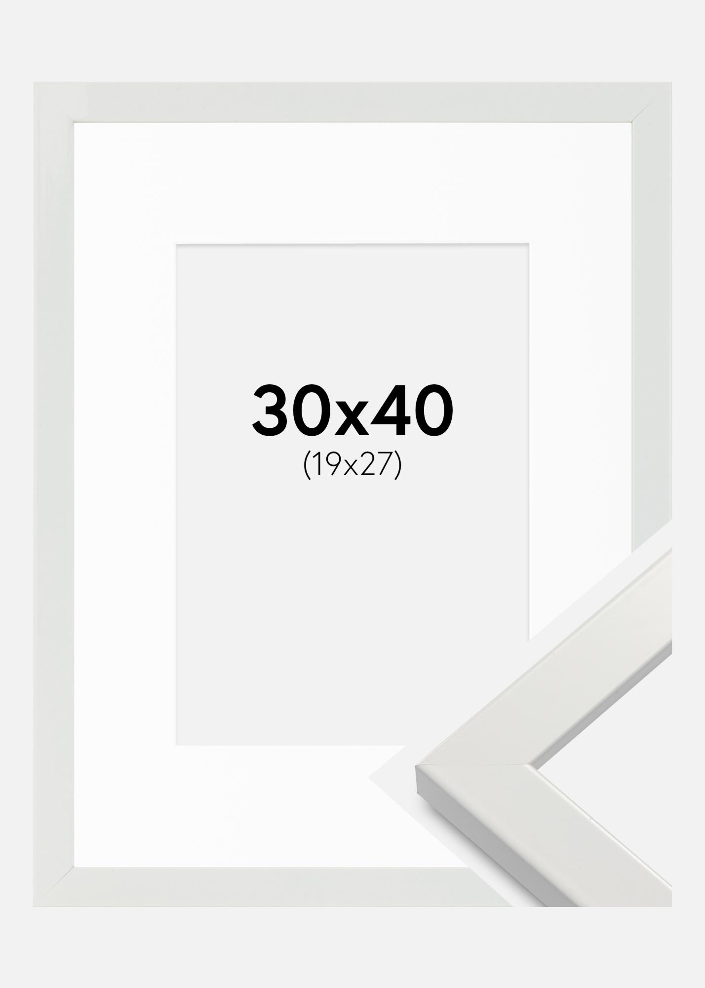 Ramme White Wood Glossy 30x40 cm - Passepartout Hvit 20x28 cm