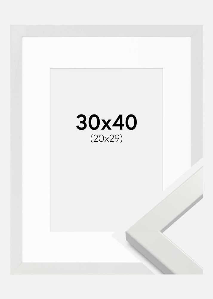 Ramme White Wood Glossy 30x40 cm - Passepartout Hvit 21x30 cm