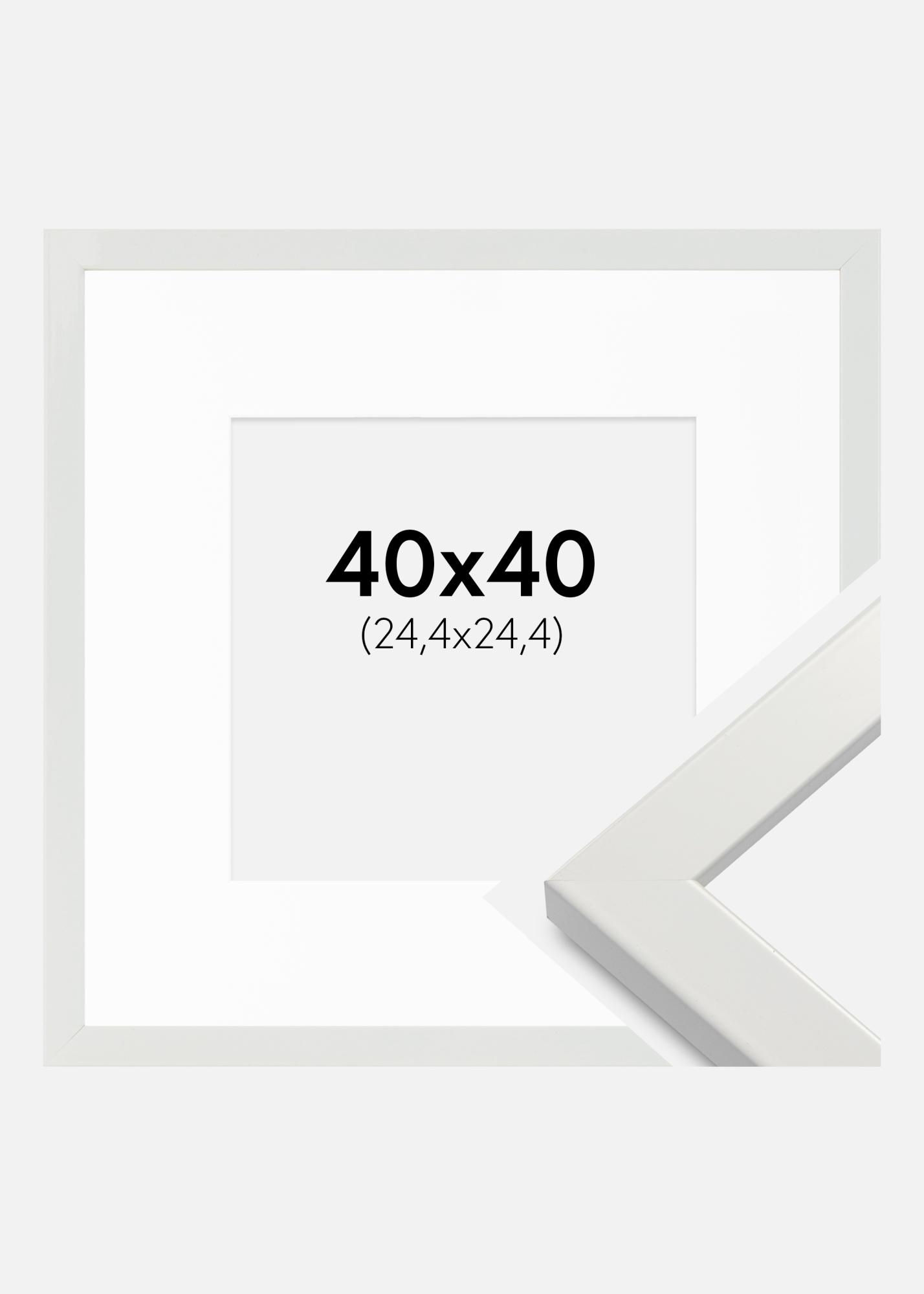 Ramme White Wood Glossy 40x40 cm - Passepartout Hvit 10x10 inches