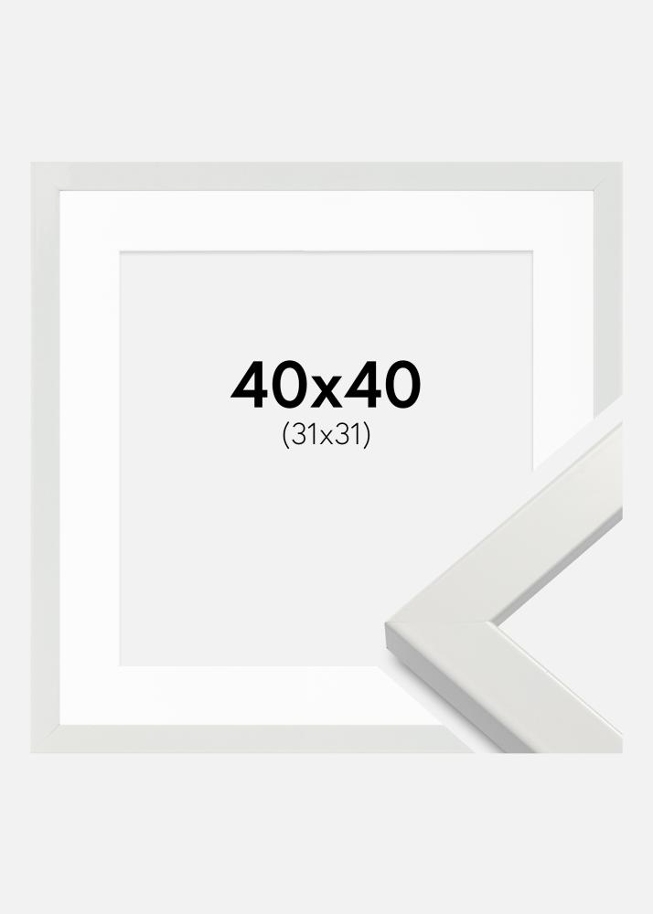 Ramme White Wood Glossy 40x40 cm - Passepartout Hvit 32x32 cm