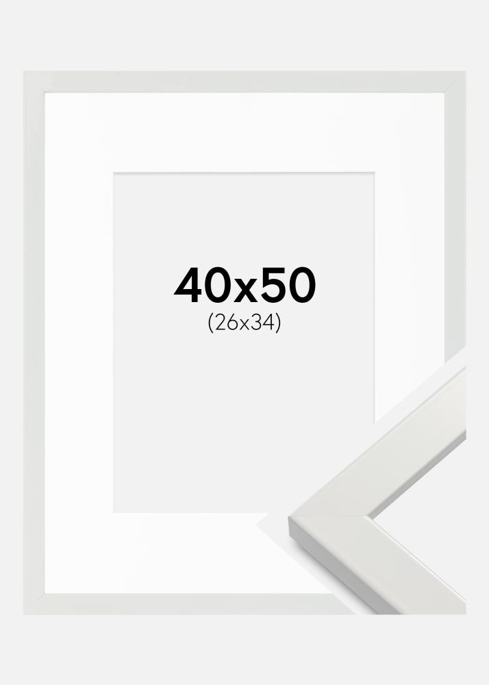 Ramme White Wood Glossy 40x50 cm - Passepartout Hvit 27x35 cm