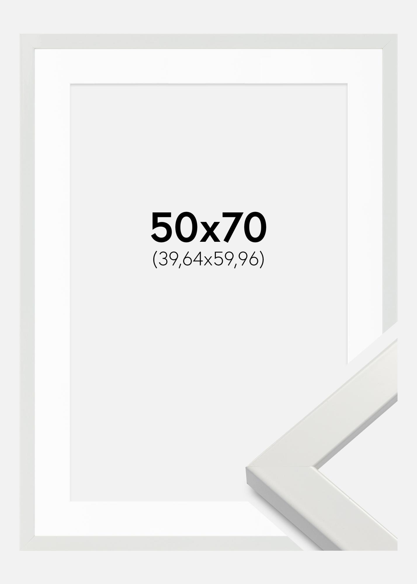 Ramme White Wood Glossy 50x70 cm - Passepartout Hvit 16x24 inches