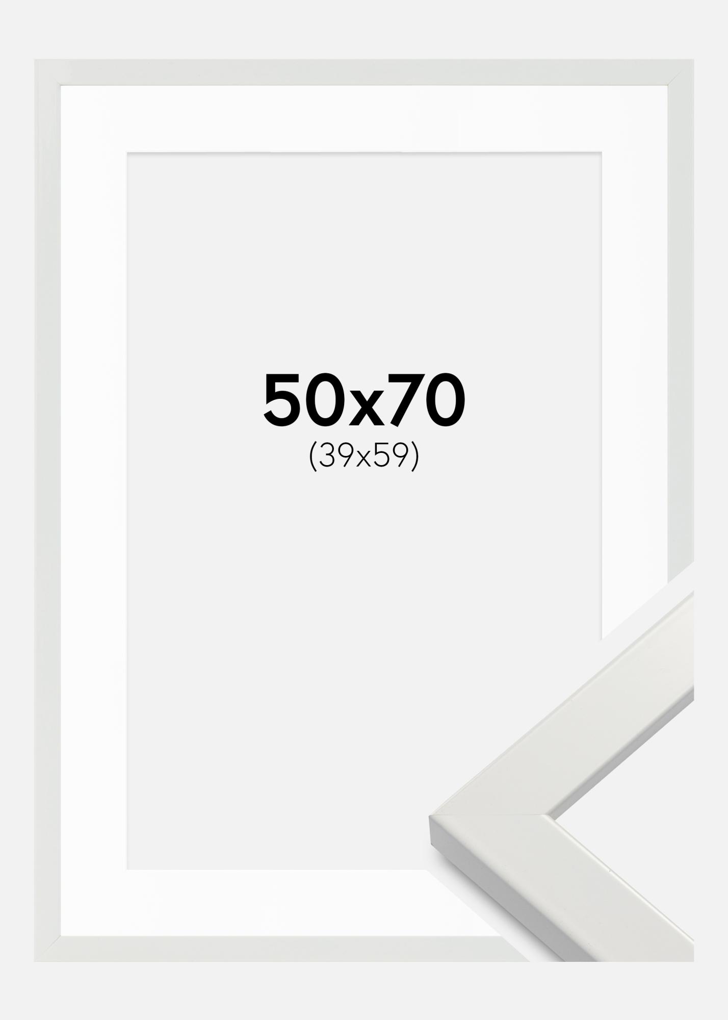 Ramme White Wood Glossy 50x70 cm - Passepartout Hvit 40x60 cm
