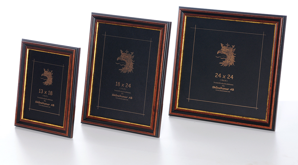 Rättvik 932 er en vakker, brun fotoramme av høy kvalitet. Rammen har en bred profil med en gullkant nærmest motivet, hvilket gir rammen en elegant og tidløs følelse. Rättvik er et utmerket valg når du ser etter en tidløs ramme som passer til de fleste typer motiver.