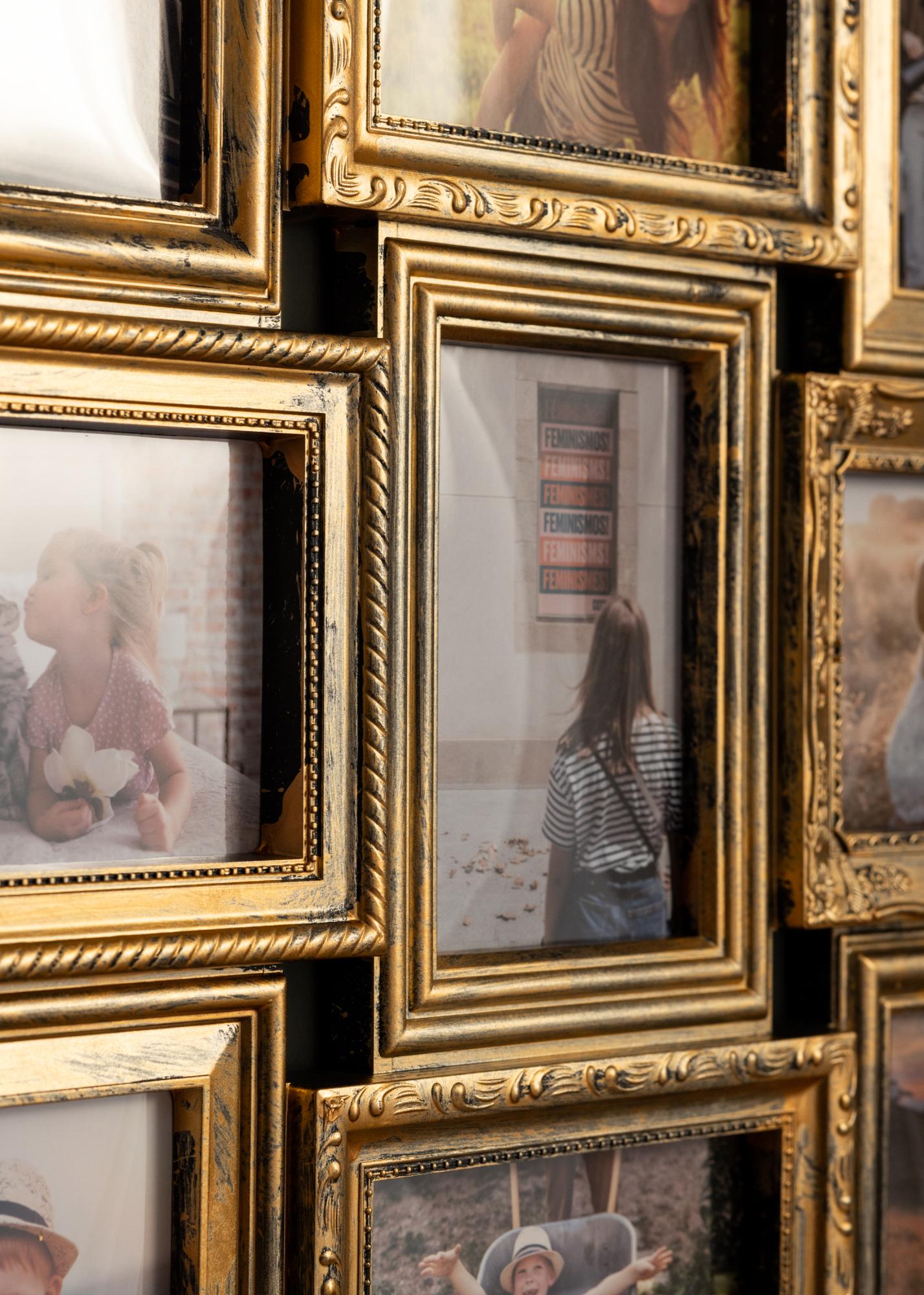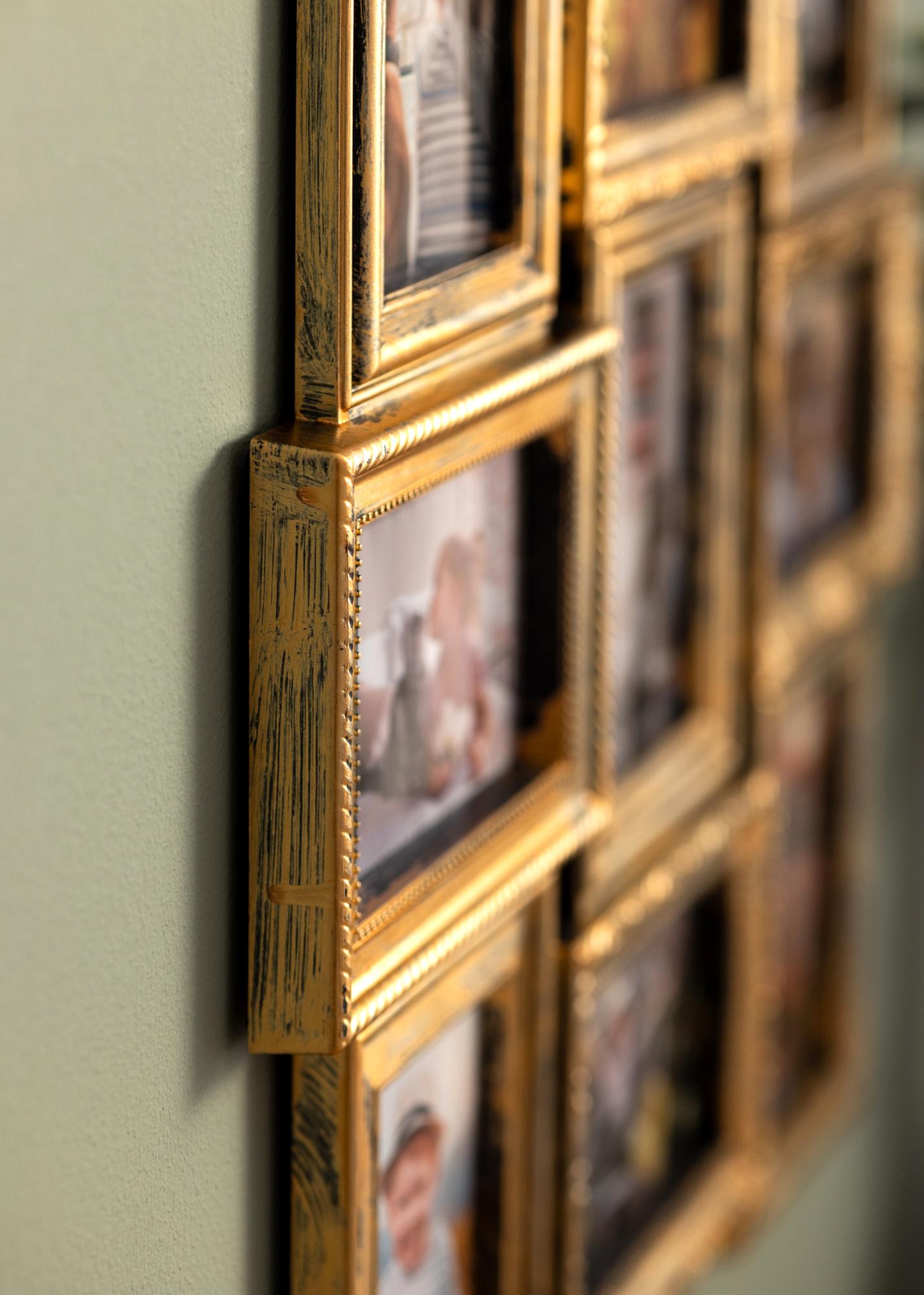 Leter du etter en gullramme i vakker retrostil med plass for alle dine favorittbilder? Denne collagerammen rommer for 12 bilder i både stående og liggende format, plassert symmetrisk i rammer ved siden av hverandre.