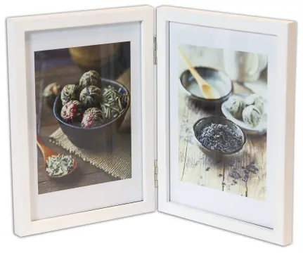 Rock Hvit Folderamme har plass til 2 stk. fotografier. Rammen har en firkantet, moderne profil som er laget av hvitlakkert tre.