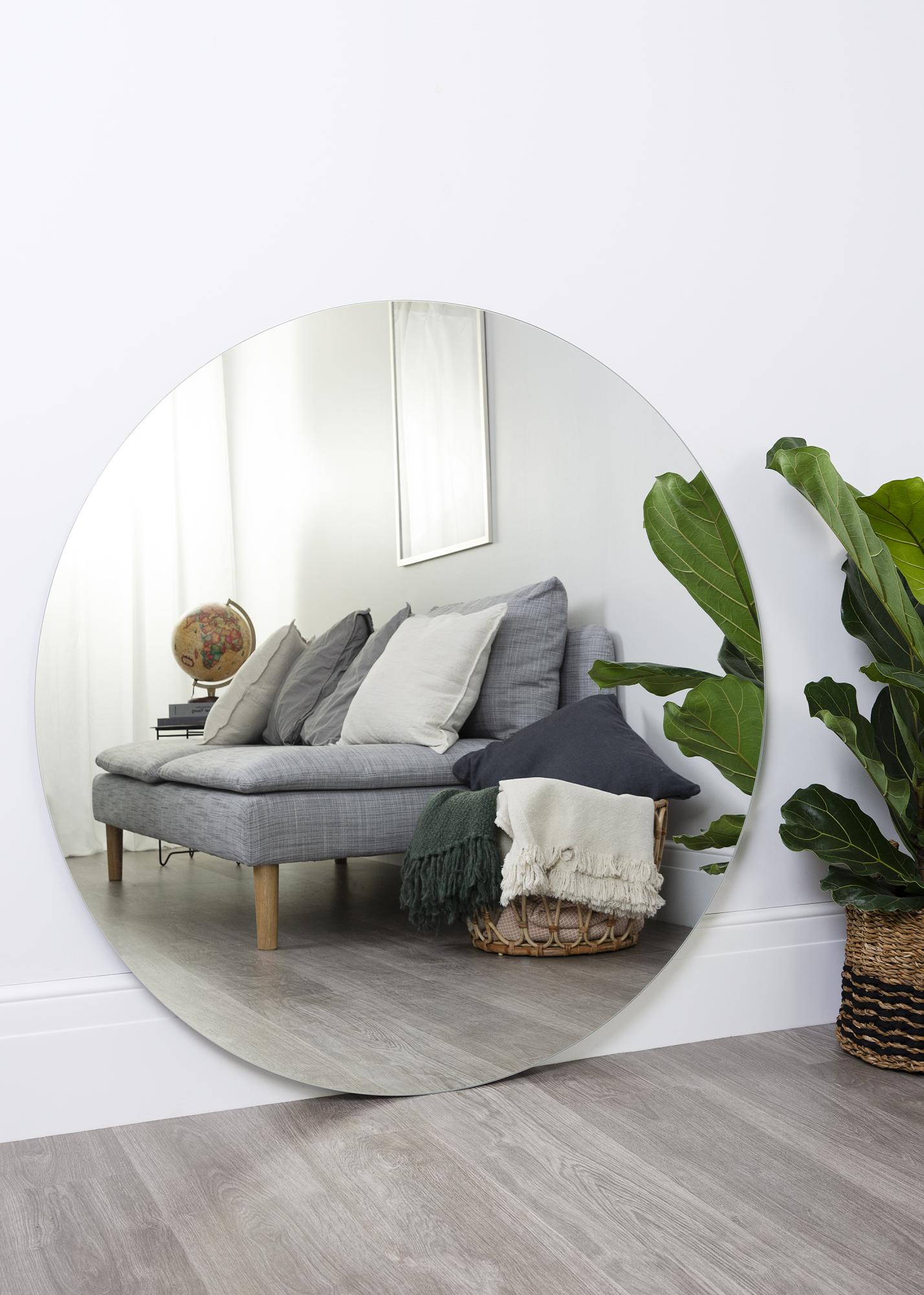 110 cm Ø rundt speil som inngår i en serie med runde speil. Speilet er veldig tynt, stilrent, og passer i alle typer rom og til alle innredningsstiler.