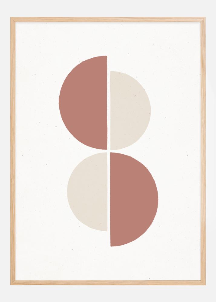 Denne stilfulle og moderne plakaten utmerker seg med sin enkelhet og eleganse. 'Rust and Sand - Duo' er en lek med geometri og farger, der to halvsirkler i en rustikk rustfarge og en myk sandtone skaper en interessant visuell kontrast. Motivet kan inspirere til ettertanke og passer utmerket i minimalistiske eller moderne interiørstiler som fokuserer på rene linjer og subtile farger.