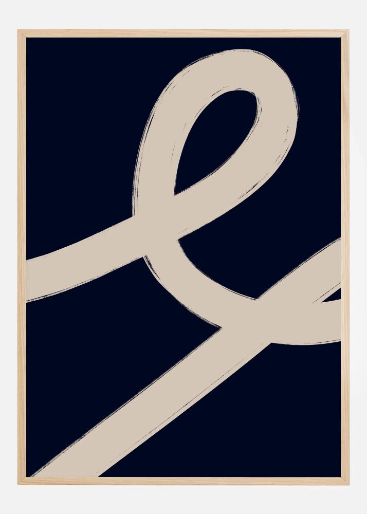 Denne minimalistiske og samtidige plakaten fanger essensen av skandinavisk design med sin rene og enkle komposisjon. En stor, beige slyngende linjeform spiller mot en dyp blå bakgrunn og skaper et bilde som er både beroligende og visuelt interessant. Kontrasten mellom de to elementene er sofistikert og gir en sterk grafisk effekt som fremhever skjønnheten i abstrakt kunst.