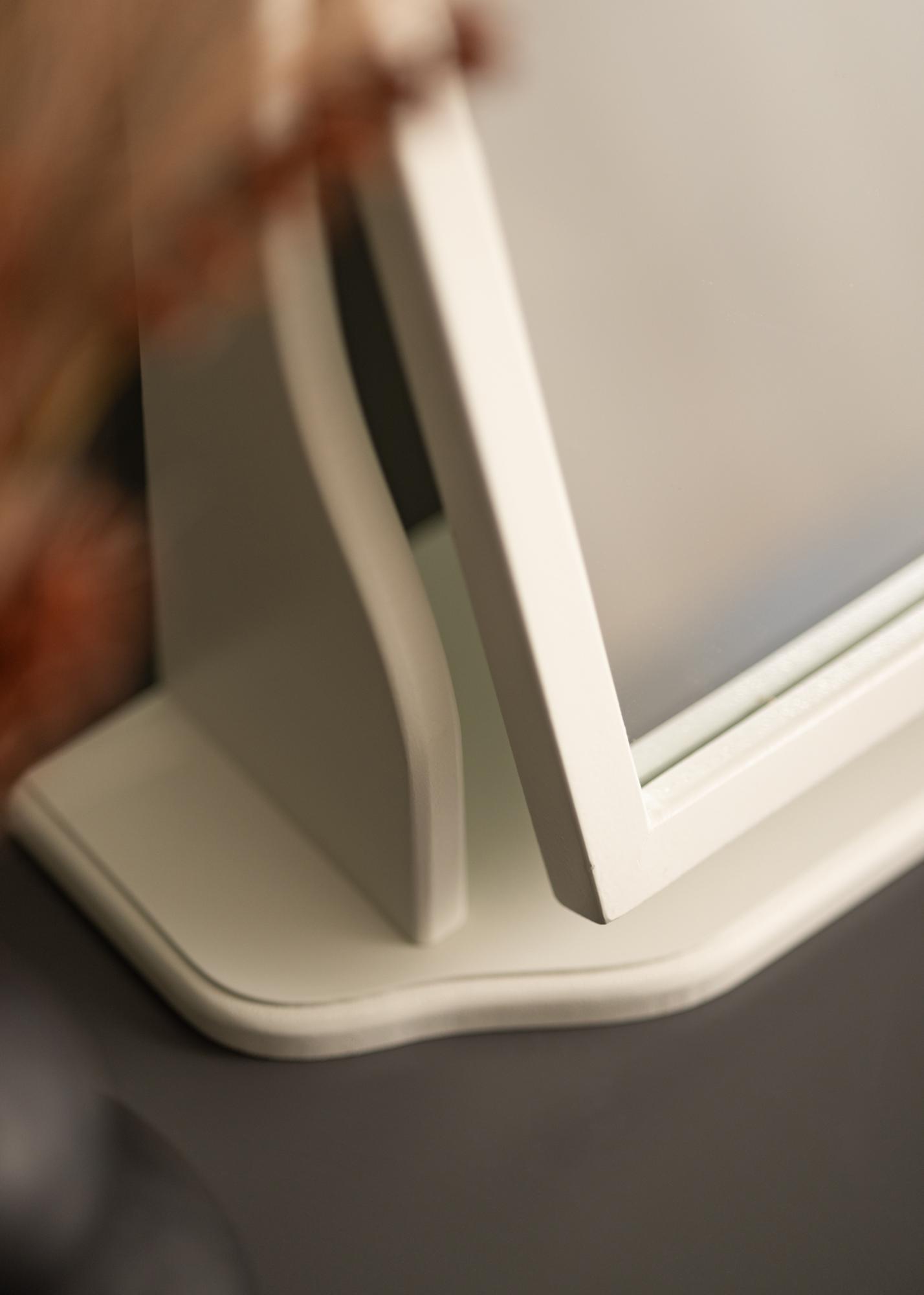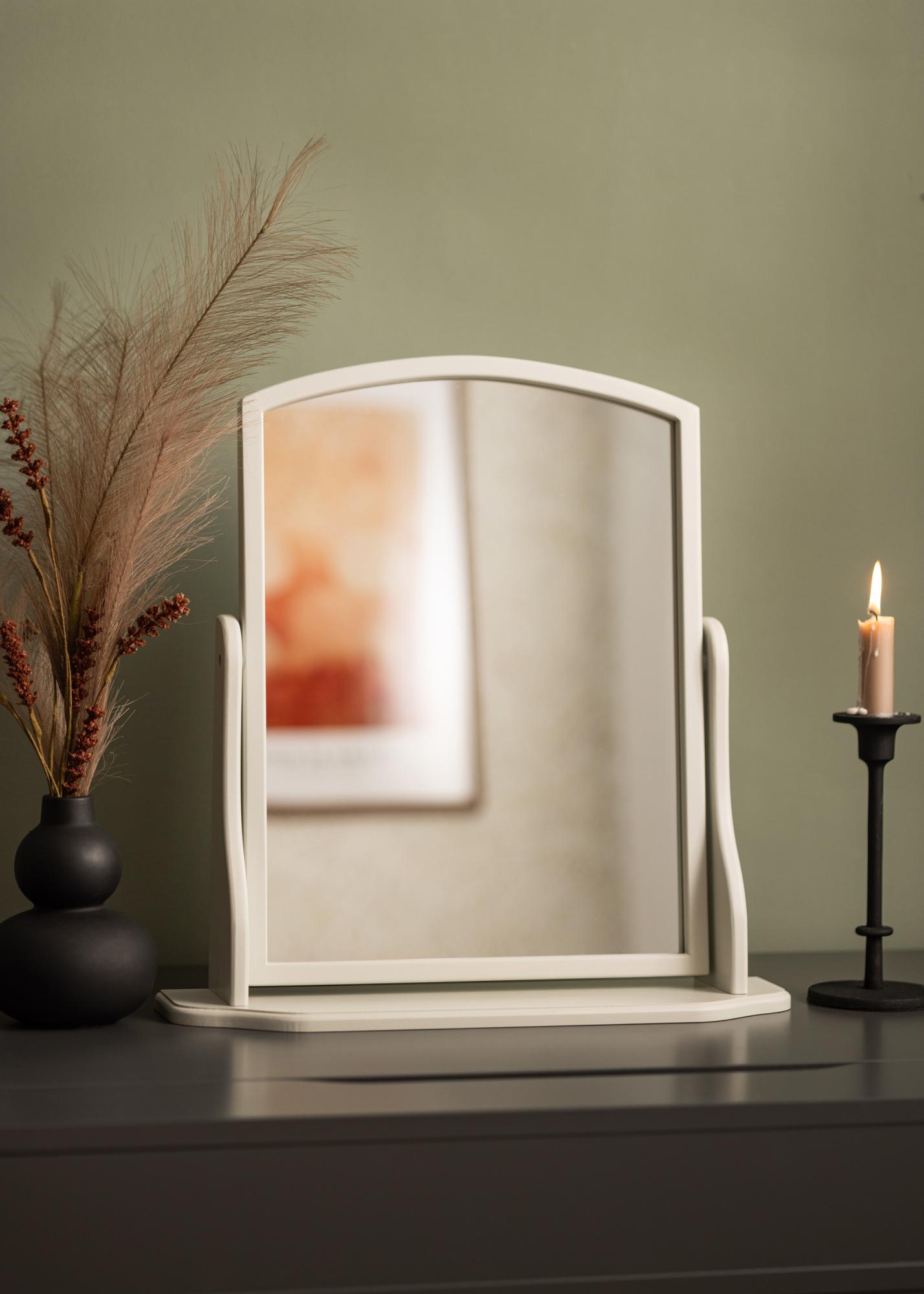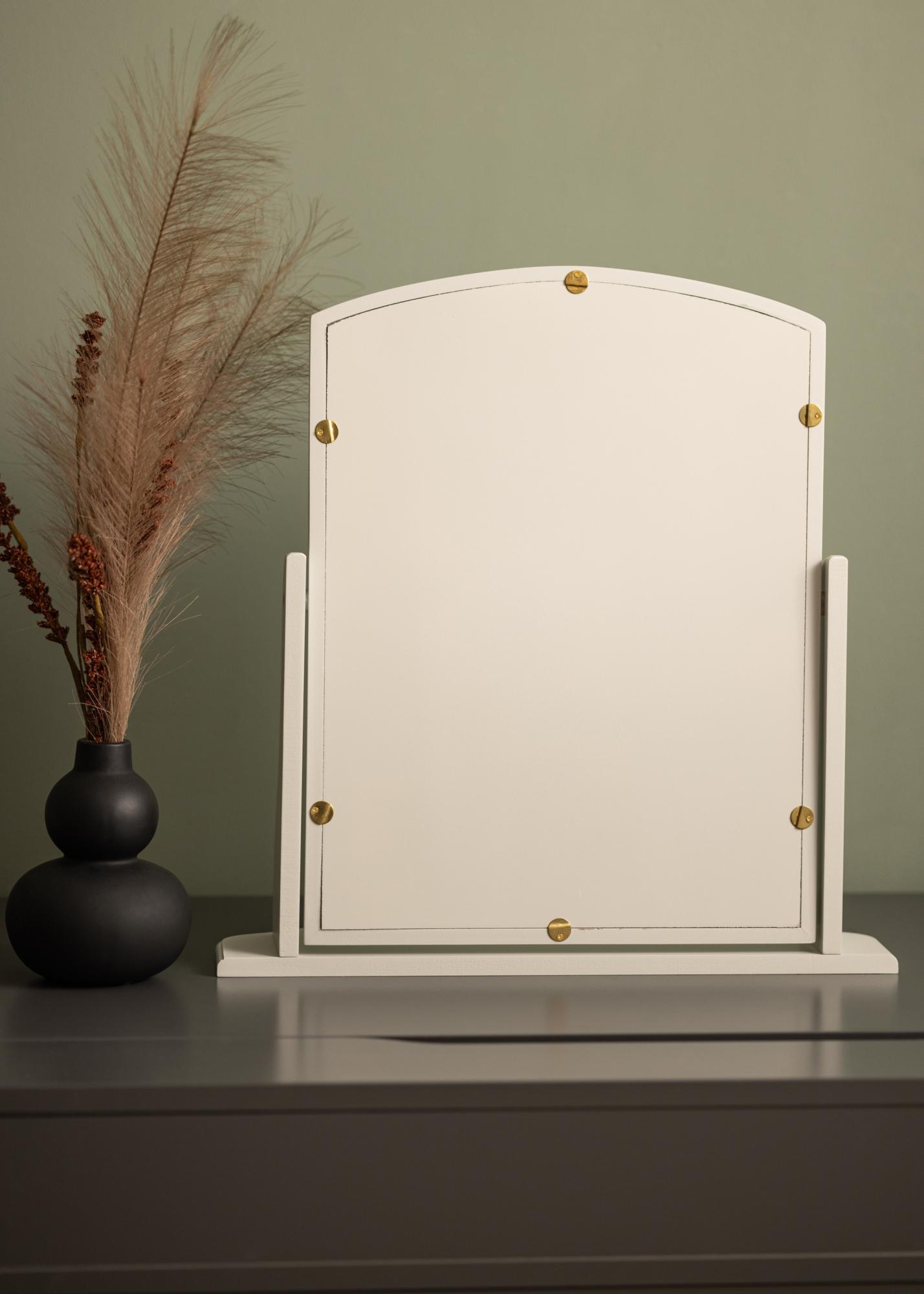 Dette speilet er utformet med en grå ramme som gir en subtil og sofistikert touch til rommet. Det står stødig på en robust base, noe som gjør det ideelt å bruke på et bord eller en kommode når du gjør deg klar for dagen eller kvelden.