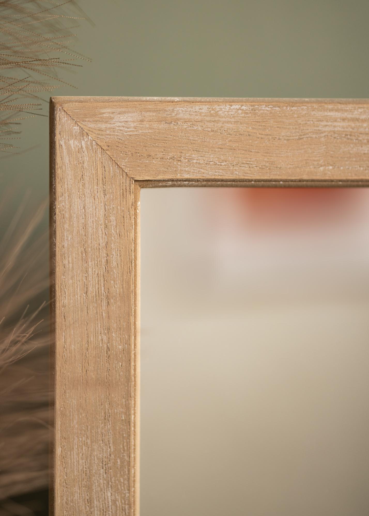 Dette sjarmerende sminkebordet er et elegant og funksjonelt tillegg til hjemmet ditt. Med målene 46x47x12 cm, tilbyr den en generøs overflate som letter dine daglige skjønnhetsrutiner. Den lyse tretonede rammen gir en naturlig og varm følelse, og får speilet til å lett smelte inn i ulike interiørstiler.