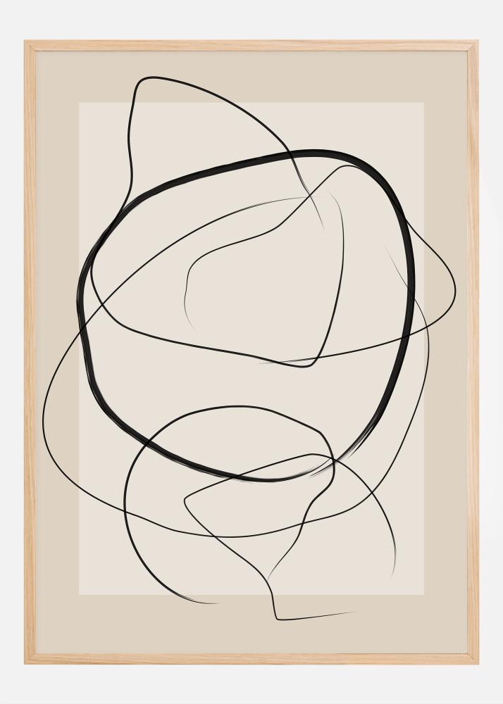 Denne moderne posteren er en del av vår kunstsamling og presenterer en serie myke, sveipende linjer som danner en abstrakt og meditativ komposisjon. De svarte linjene flyter fritt over den beige bakgrunnen og skaper en følelse av bevegelse og rytme, samtidig som de inviterer betrakteren til et øyeblikks kontemplasjon. Denne minimalistiske men dristige kunsten er perfekt for de som verdsetter det abstrakte uttrykkets kraft til å åpne opp for personlig tolkning og indre refleksjon.