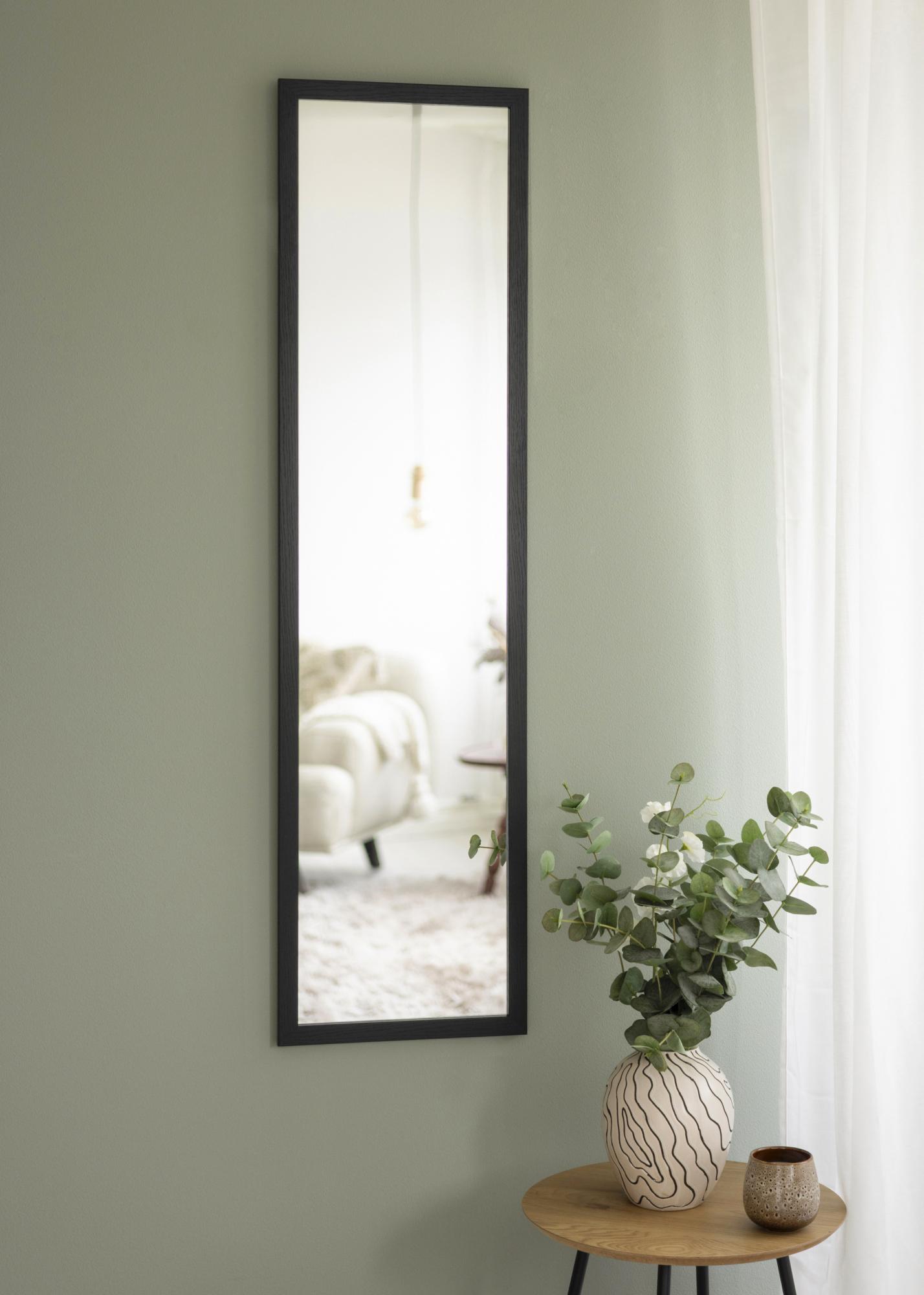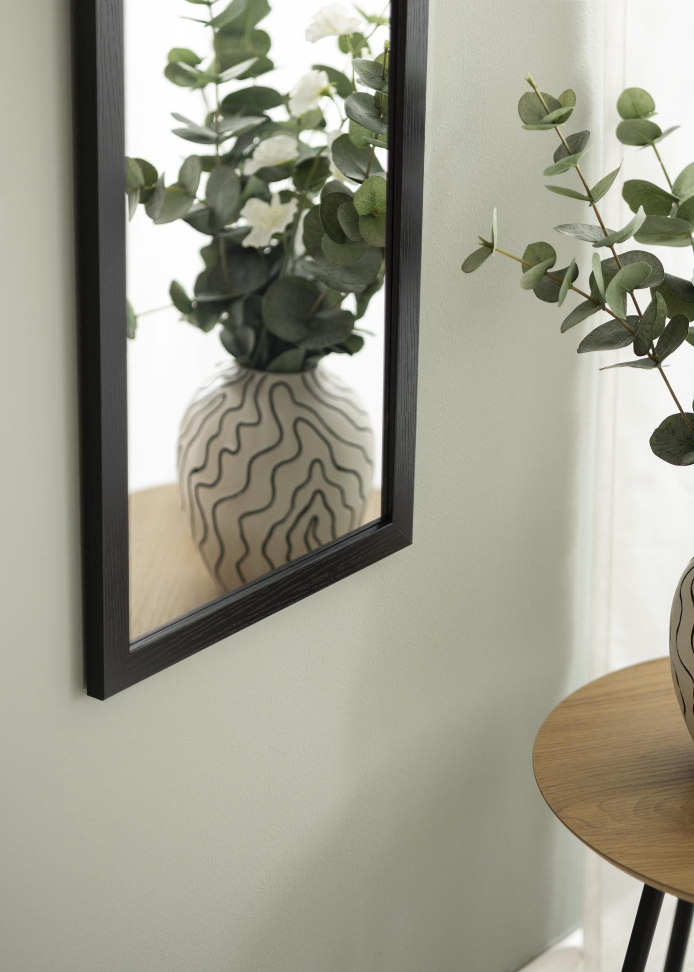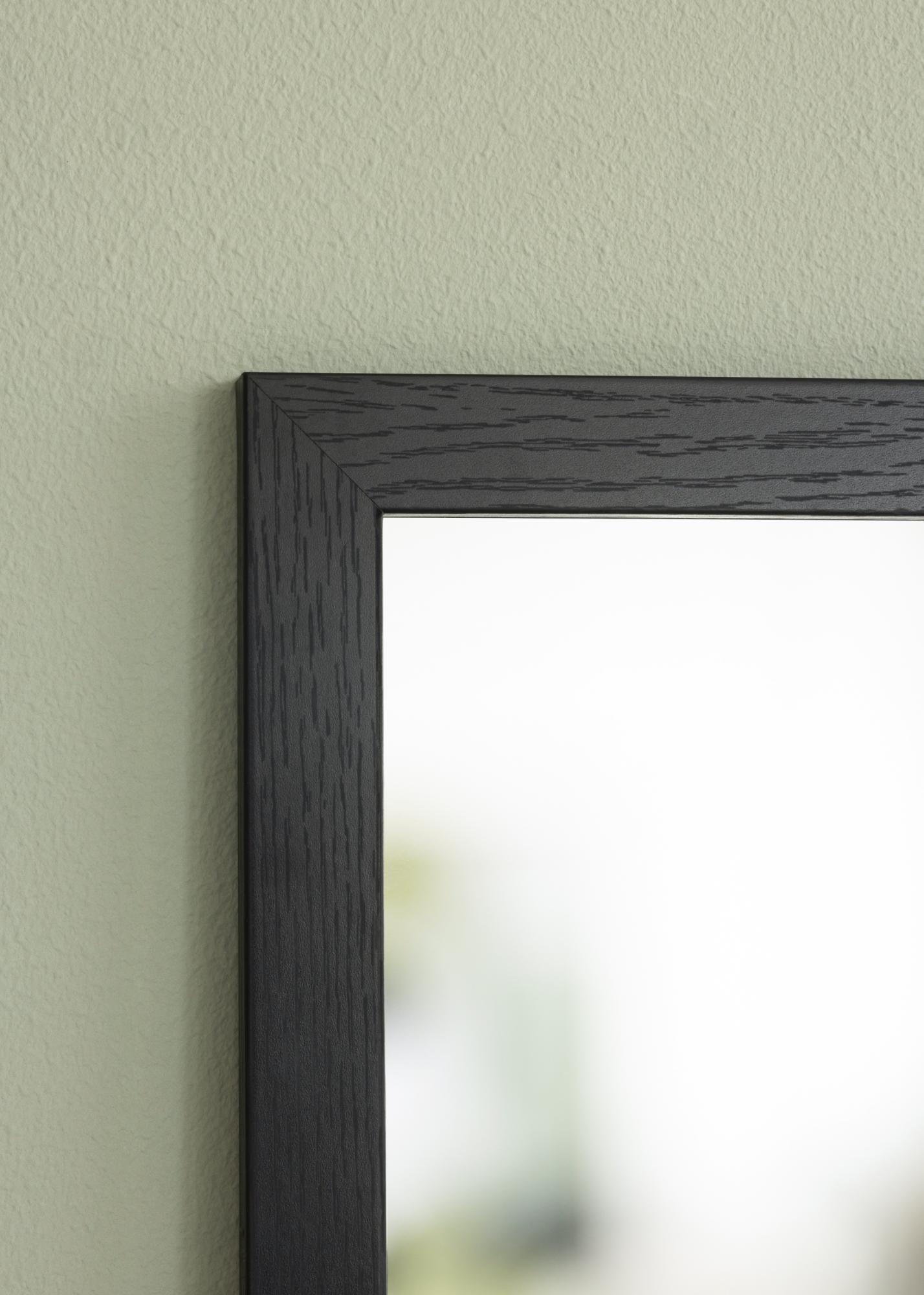Denne dørspeilen har en slank og moderne treramme i svart farge som gir et varmt og naturlig uttrykk. Den matte overflaten gjør at speilen føles diskret, samtidig som den tilfører struktur og karakter til rommet.
