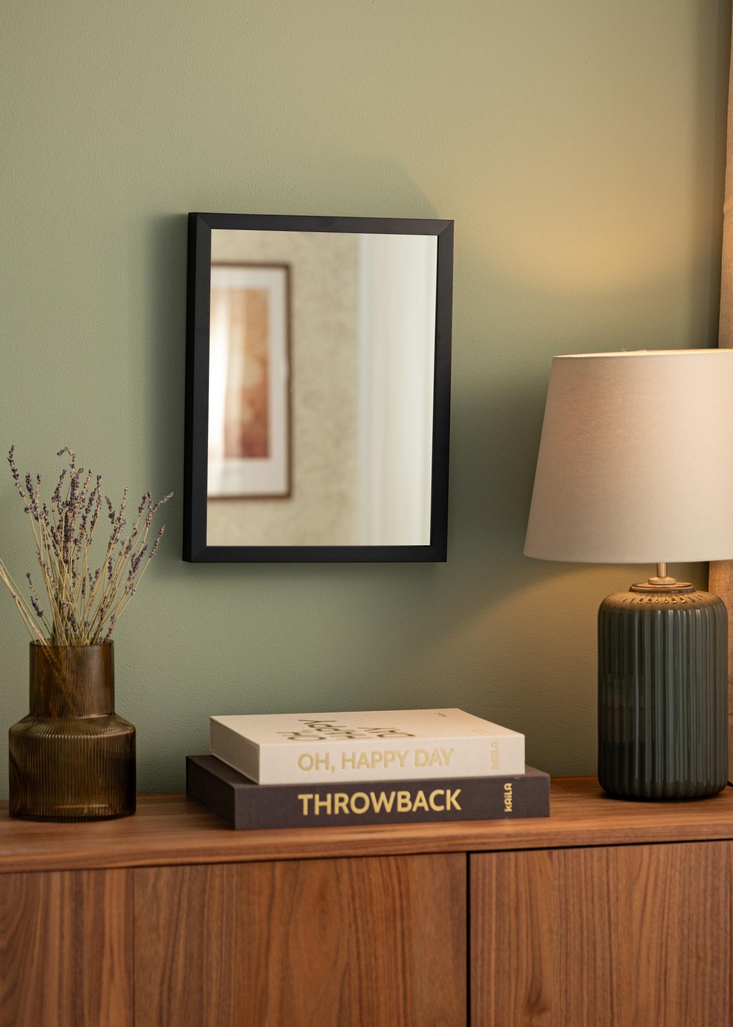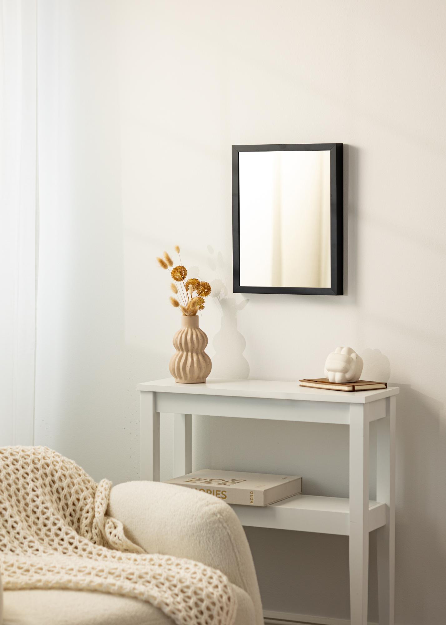 Den svarte fargen på rammen gir speilet et moderne og tidløst utseende som aldri går av moten. Det fungerer like godt i et moderne hjem som i et mer tradisjonelt innredet rom. I tillegg er svart en farge som enkelt kan kombineres med andre farger og materialer, noe som gjør det lett å integrere speilet i din eksisterende innredning.