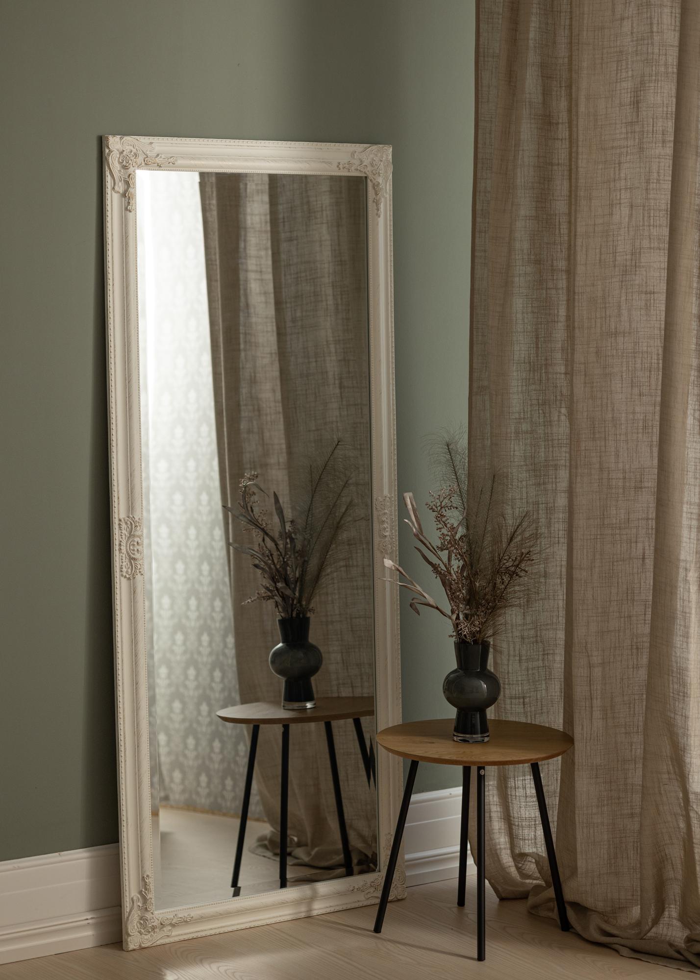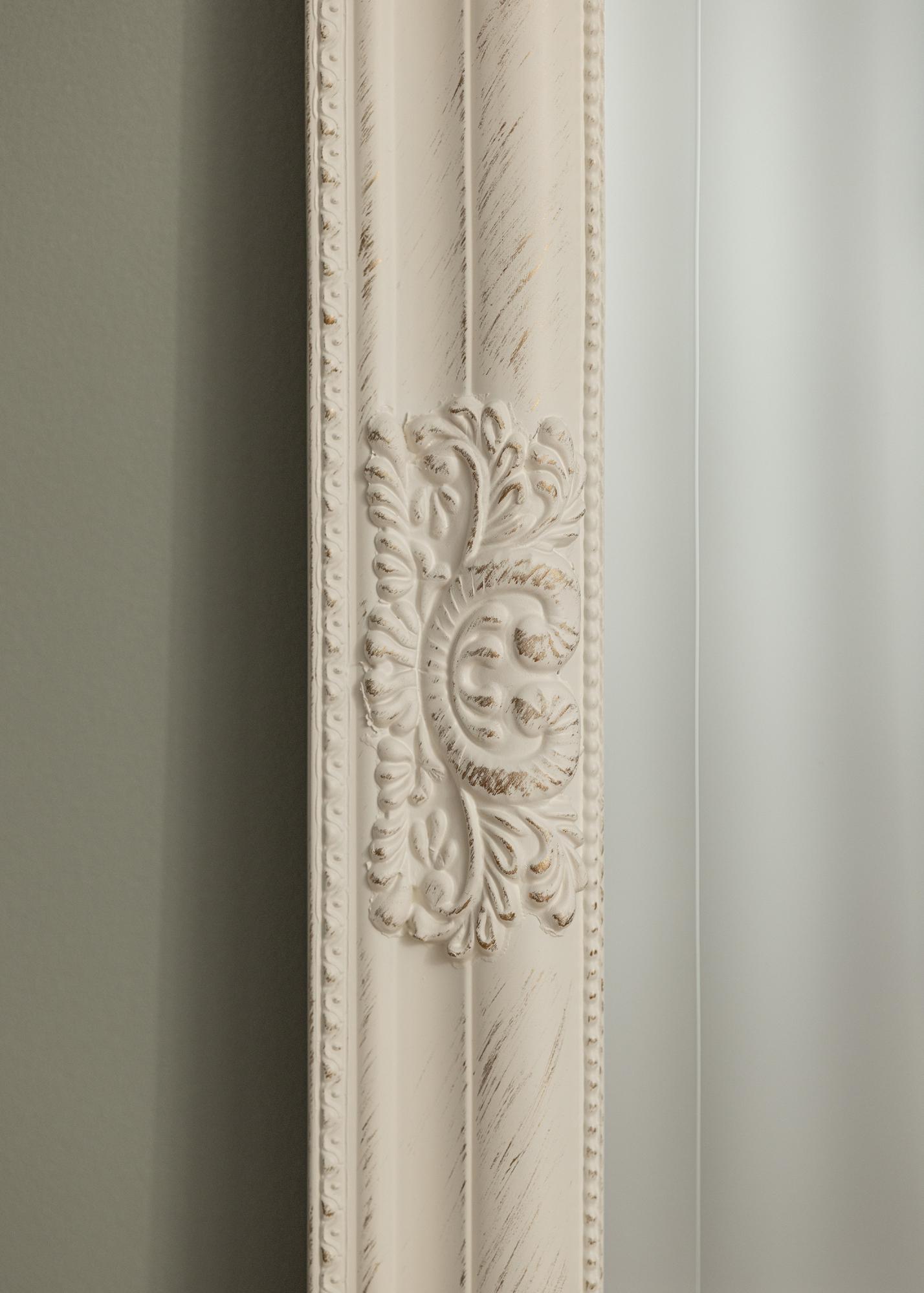 Oppdag den stilfulle elegansen med vår rektangulære speil, en perfekt kombinasjon av klassisk sjarm og moderne enkelhet. Med sine generøse mål på 70x160 cm tilbyr dette speilet en praktisk og dekorativ funksjon i hjemmet ditt. Den hvite rammen er rikt utsmykket med detaljer som minner om svunne tider, samtidig som den rene formen holder designen moderne og enkel å matche med resten av møblementet.