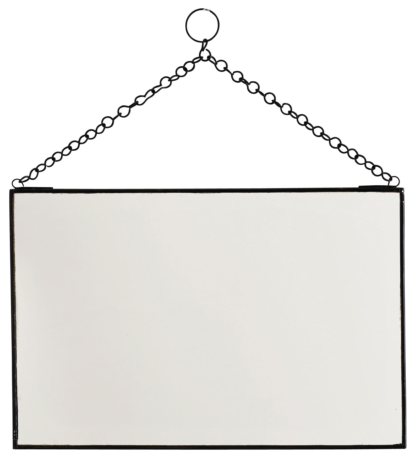 Dette rektangulære speilet fra Madam Stoltz blir en flott detalj i soverommet eller stuen. Den klassiske formen med svart ramme gir et stilig uttrykk, som forsterkes ytterligere av det elegante kjedet speilet henges opp i. Speilet måler 30x20 cm. Den nette størrelsen gjør at veggspeilet er superfint sammen med andre speilmodeller.