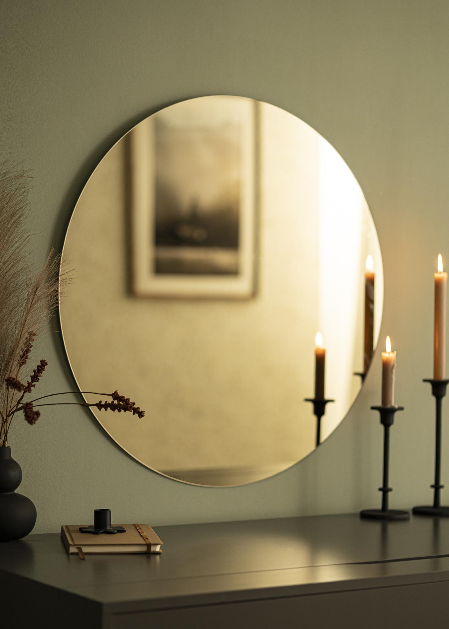 Champagnefarge gir en følelse av luksus, så hvis du leter etter et eksklusivt speil, er dette det riktige valget. Dette runde veggspeilet har tynt speilglass og elegant design uten ramme. Speilet er 70 cm i diameter.